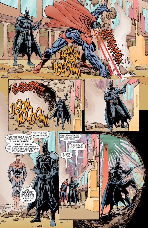 thats the point. based on his abilities and character, he wasnt suppose to get any of his powers back because once they are gone, only the super sun, as a source to his power can restore them because his powers come from prime 1 million. however, if this story allows him to still get his powers back, as was stated, then we will go with that. now, i dont need to prove he got his powers fully back, because all i need to show is the fact his powers began to restore when he was with batman. the ultraman fight didnt happen a moment later. it happened several events later. it was never stated that kal kent was still depowered or wasnt at full power, and as we see with his stories, it is always stated when he is not at full power. therefor, here is no reason to asume his powers didnt restore fully for some reason. if you believe he still wasnt at full power and his powers didnt return to him, then the burden of proof is on you. i have the story with me saying his powers got back.