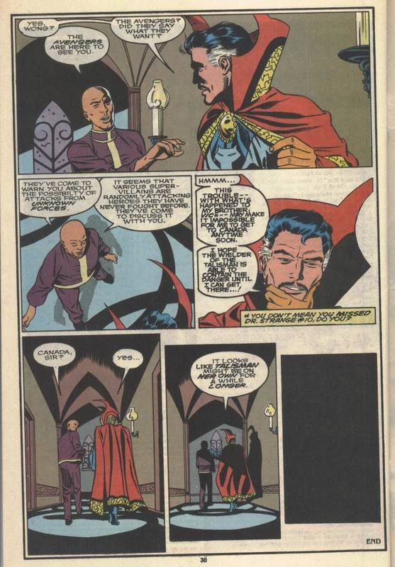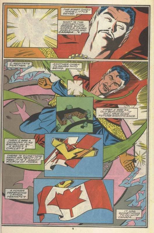 Llan: Dr.Strange Omen Alpha Flight #78-Dr.Strange feels something odd is happening in Canada and begins to investigate. I have no idea what happened to Zeitgiest though, he seemed pretty cool.