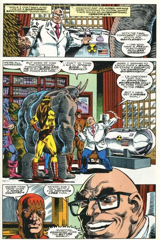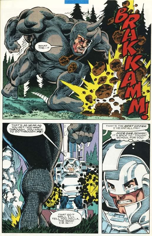 After the Raft was destroyed, US Agent was sent to recapture super villians and here he takes out Piledriver of the Wrecking Crew with two hits.