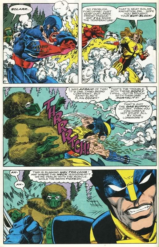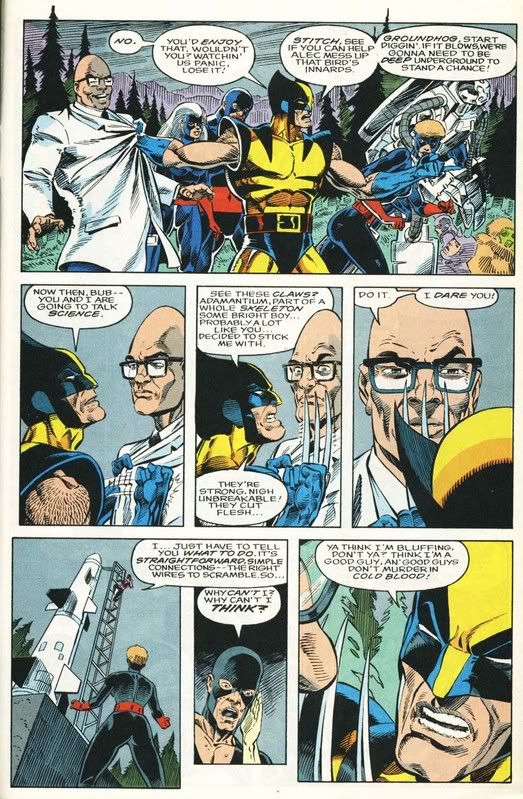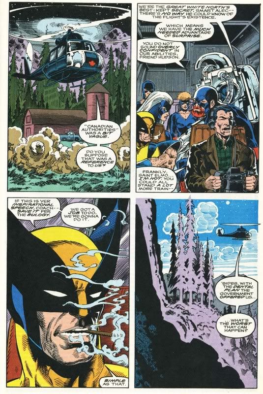 First Flight: Training Alpha Flight Special #1: First Flight-Here is the team that was made before ALpha Flight was formed. It was led by none other than Wolverine. Here the inexperienced team spars being watched closing by Wolverine and James Hudson