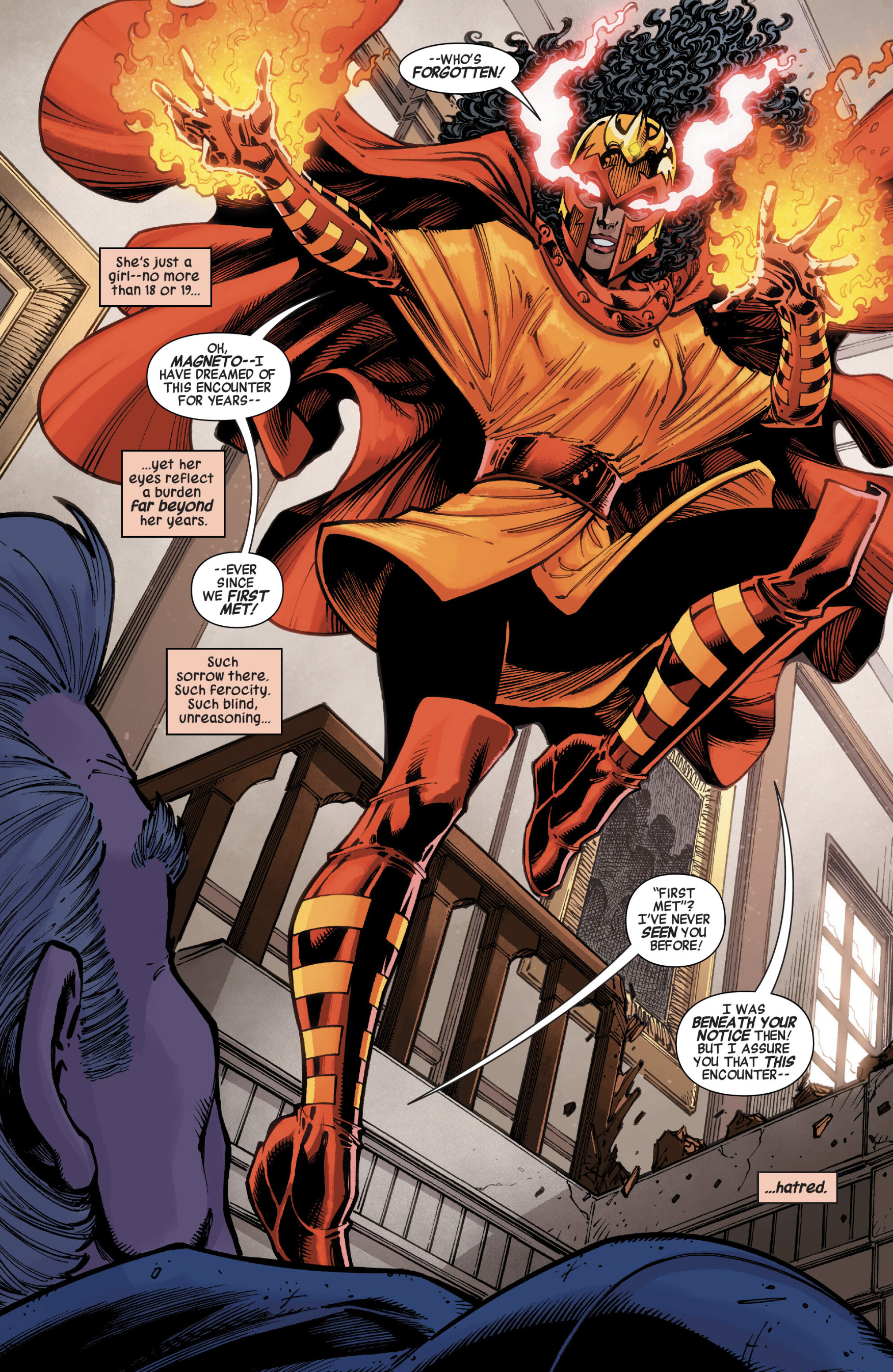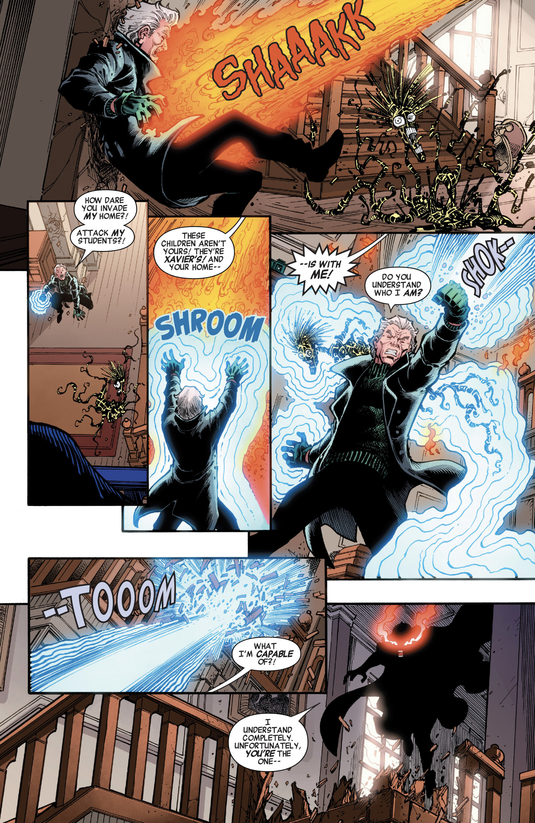 Irae, a new character destroys Magneto's unbreakable shields and beats the shit out of him. It's written around his headmaster of new mutants era, so no weakened BS either.