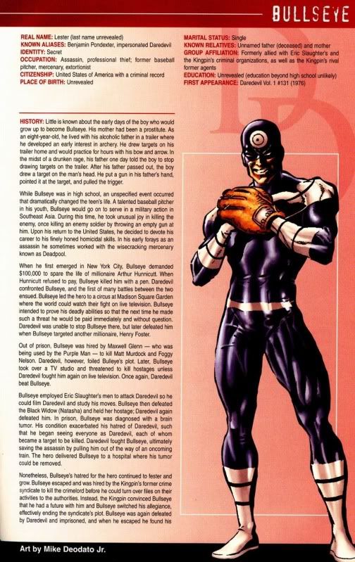 A lot of the Marvel bio stuff contradicts the actual comics regarding Bullseye's bones.