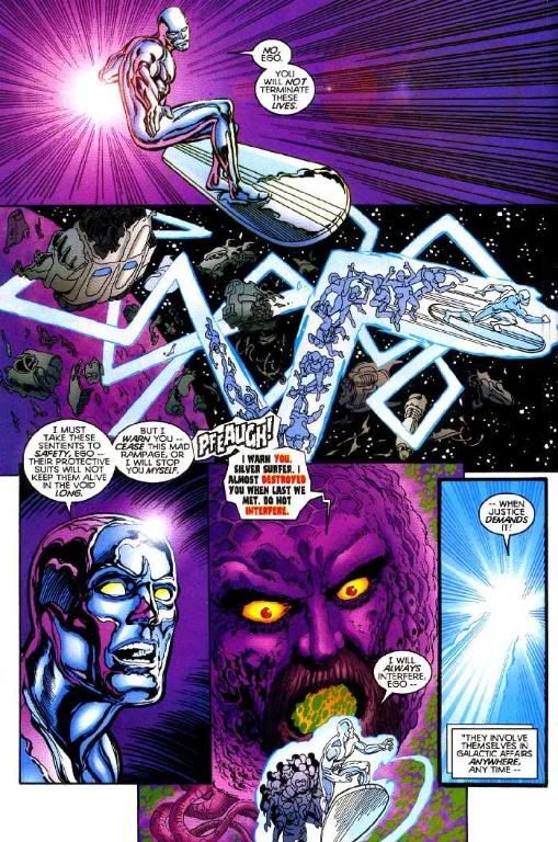 4.) Show me that Silver Surfer's matter manipulation is effective against a non reality warper or non matter manipulator but has superior energy blasting output than Surfer.
