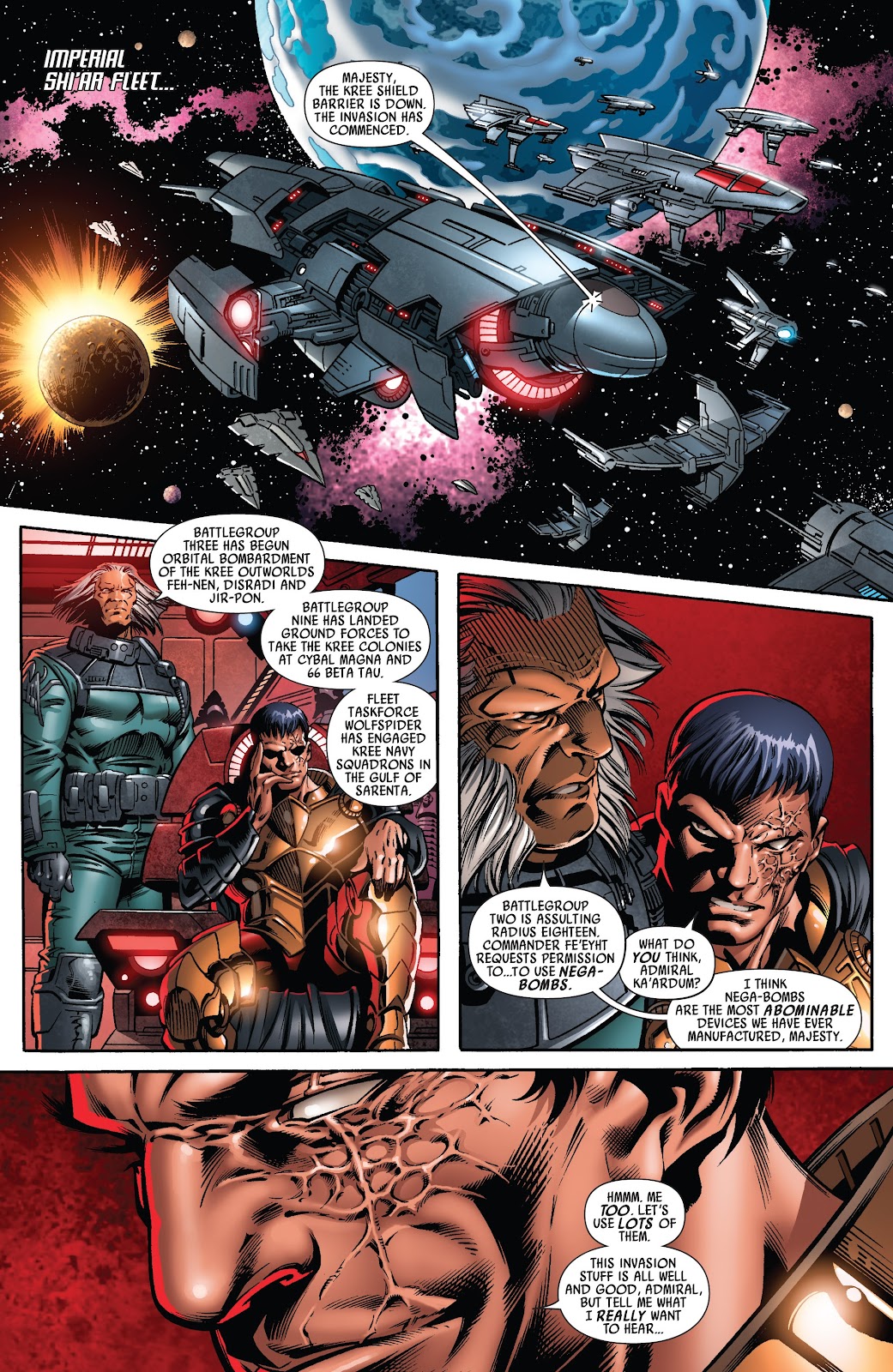 - Similarly, Shi'ar warships destroying planets (or being stated to be able to do so with their normal/standard weapons)