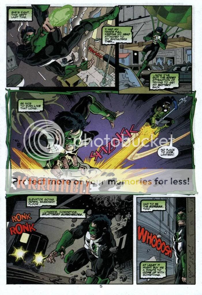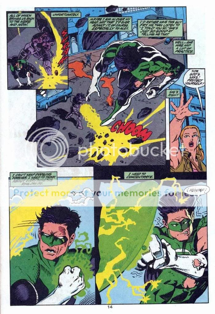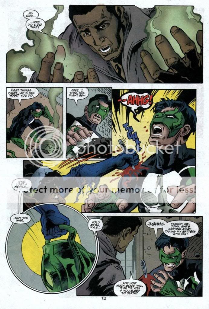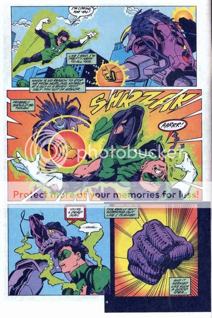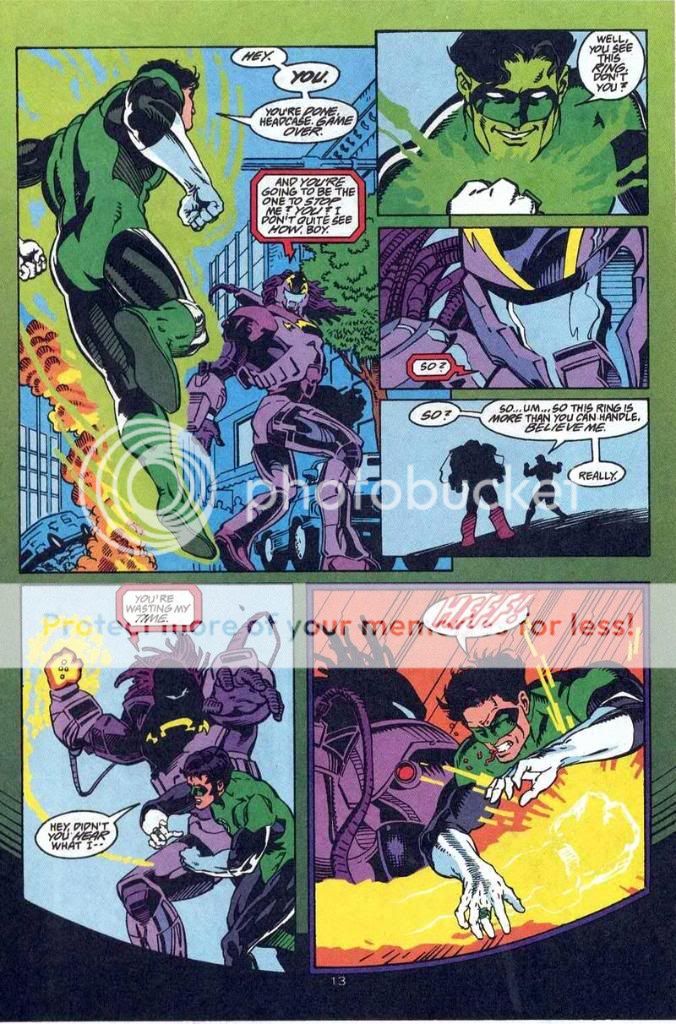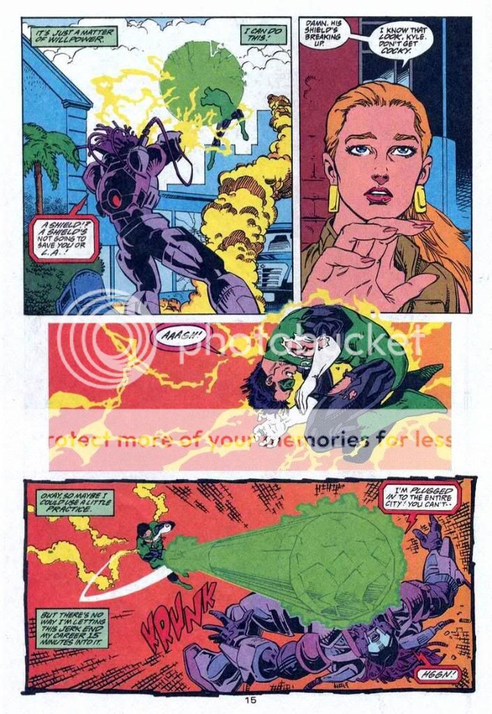 As for the two that don't count......in one Kyle talks about how his ring has a limited charge, and the villain has his power battery. He can't exactly waste energy, and the girl even talks about him being out of power yet. And the other one he's just got his ring, and is learning how to use it without any training. He isn't going to know it's power, and he still beats a big threat of the DCU.