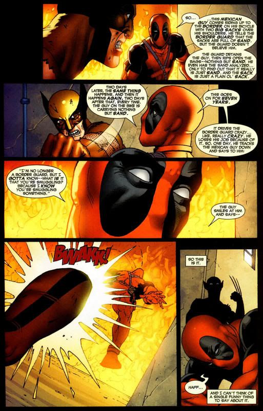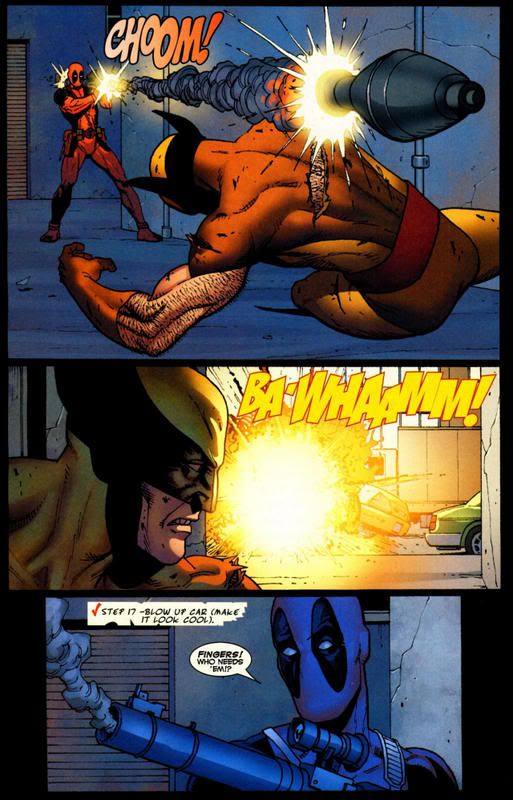 How about this story arch would have been over within the first comic...wolverine had many oportunities to take out deadpool, and he was trying to talk to him...imo wolverine clearly outmatches him
