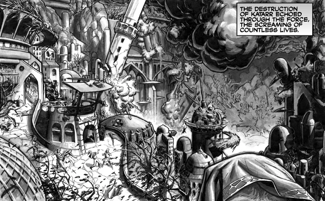 Yeah as I said the buildings were intact, they just describe it as a ghost town, I recall no mention of damage. Ziost is more like Katarr, but tbh Katarr is on a whole other level, Nihilus laid waste to everything.